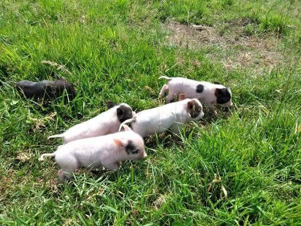 We are well known in the Northwest for raising rare, mini heritage pigs. Breeds include; KuneKune, Juliana, and American Guinea Hog crosses. Our pigs are bred for their docile disposition which makes them easy to care for and an ideal pig for the homestead or farm. The pigs we breed are generally quite friendly and are socialized at an early age; they even like a good belly rub or back scratch. Our mini pigs have short snouts and display minimal rooting. These short snouted pigs are less likely to be destructive on fences and land. Their main food source is grass so their food intake is small. Our pigs are perfect for hobby farmers, petting zoos, or even as therapeutic pets. These friendly animals get along well with other farm animals and pets. Contact us today to come pick yours out!